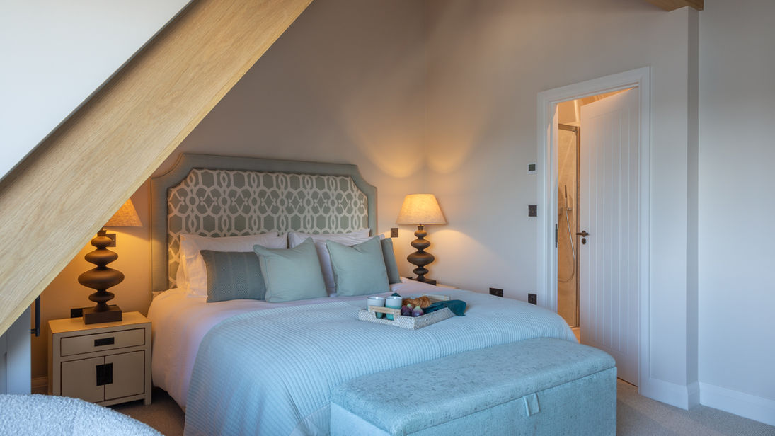 Master Suite (Bedroom 4): Super King / Twin - A stunning suite with vaulted ceilings, dressing area, built-in wardrobes, and a peaceful seating area with estuary views. The ensuite shower room includes a spacious double walk-in shower and stylish finishes throughout.