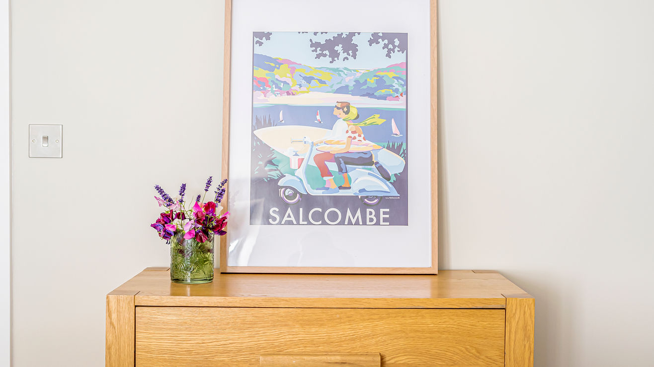 The apartment has been beautifully finished with quality furnishings and unique artwork to create a luxury, chic bolthole in central Salcombe.